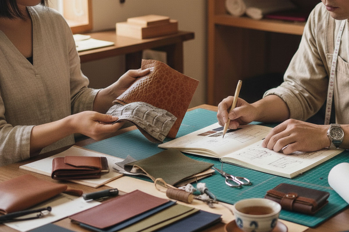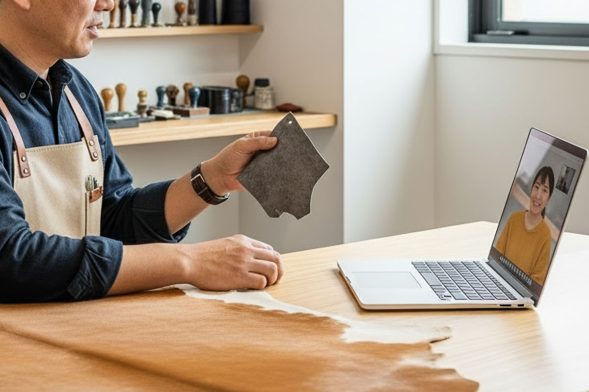 スクラッチや写真をもとにお打ち合わせを重ねます ※イメージ画像です お客様の理想の100%に近い形で製品を仕上げるために、綿密なお打ち合わせを行います。お客様自身でご用意していただいたイラストやお写真などを参考にしながら、皆様とイチから製作していきますので、完全オリジナルオーダーメイドとなります。 財布やポーチ、名刺ケース、鞄などはもちろん、ベルト、カバンのベルト、ノベリティ・キーホルダー等の製作も可能ですので、まずは「こんなものは作れますか?」等とお気軽にご相談いただけると嬉しいです。 ※文字の焼印なども可能です。 丁寧に色と革を選定します 革製品を製作する上で最も重要なのが革選定です。お客様に納得していただけるまで選んでいただけるよう、革サンプルもたくさんご用意しておりますので、革選びからお色選びまで、慎重に行っていただくことが可能です。少しでも皆さんの理想に近いものを一緒に作っていきましょう。 Zoom・メールなどオンラインでのお打ち合わせも可能です ※イメージ画像です 打ち合わせは、対面だけではなくZoomやメールでも対応可能です。そのため遠方のお客様でも、当社に足を運んでいただくことなく、お打ち合わせ・製品の製作が可能ですので、お気軽にお問い合わせください。 大切な人への贈答用にもおすすめです 革製品は、その高級感や使いやすさから誰に贈っても喜んでいただけるものだと思います。恋人へのプレゼント用、定年を迎えた親御様へのプレゼント、新成人を迎えたお子様へのプレゼントなど、プレゼントとして渡せる機会は多岐にわたります。最高品質の製品をお届けすることをお約束いたしますので、ぜひNorth Familyに大切なプレゼント作りをお任せください。 【業者様向け】革の開発も可能です 業者様等の法人様に限り、革からの開発も承っております。North Familyでは、牛革・アザラシ革・鹿革の製品を中心に取り扱っておりますが、基本的にどのような製品でも対応できます。また「緊急で1ヶ月後までに作って欲しい」など、短納期での開発も随時ご相談下さい。スピード納品を承ることも可能ですので、できる限り短納期での開発も承ります。加えて、小ロット〜大ロットまで、お客様のニーズに合わせた開発をご提供します。様々なケースにてお力添えができるかと思いますので、まずは一度お気軽にご相談下さい。 North Familyで一級品の革製品を ご購入はこちらから